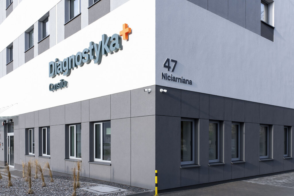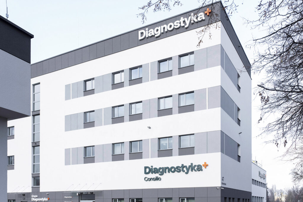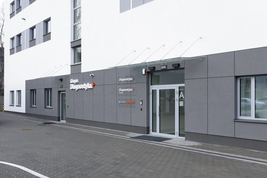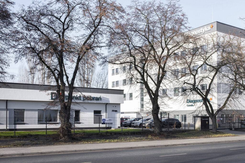 Budynek usługowy z usługami laboratoryjnymi, biurowymi i medycznymi Diagnostyki w Łodzi