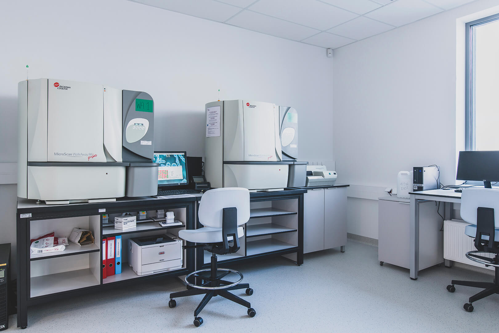 – Laboratorium medycznej diagnostyki laboratoryjnej ze zautomatyzowaną linią immunobiochemiczną i hematologiczną na poziomie bezpieczeństwa biologicznego BSL 2. Obecnie największa linia immunobiochemiczna zainstalowana w Europie o powierzchni 1325 m2. Materiał dostarczany pionową linią transportową próbek krwi z modułami załadowczymi ATRAS zlokalizowanymi w pomieszczeniu przyjęcia materiału i wyładowczymi ATRAS AR w obszarze laboratorium,